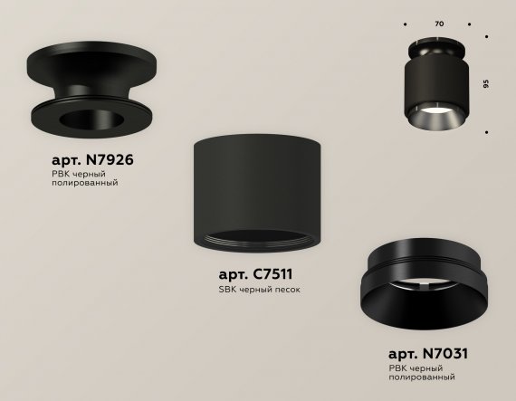 Комплект накладного светильника XS7511060 SBK/PBK черный песок/черный полированный MR16 GU5.3 (N7926, C7511, N7031)