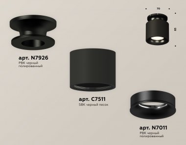 Комплект накладного светильника XS7511061 SBK/PBK черный песок/черный полированный MR16 GU5.3 (N7926, C7511, N7011)