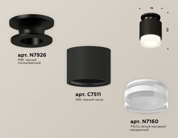 Комплект накладного светильника с акрилом XS7511065 SBK/PBK/FR черный песок/черный полированный/белый матовый MR16 GU5.3 (N7926, C7511, N7160)