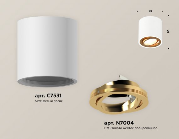 Комплект накладного поворотного светильника XS7531004 SWH/PYG белый песок/золото желтое полированное MR16 GU5.3 (C7531, N7004)