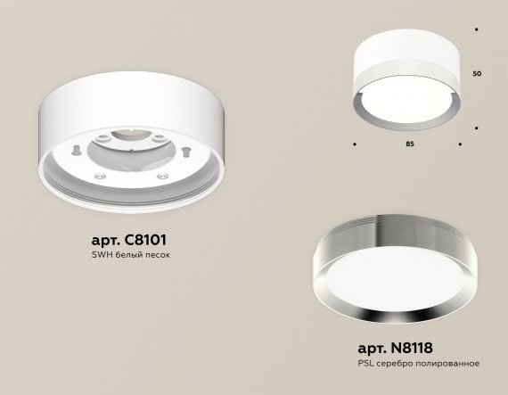 Комплект накладного светильника XS8101003 SWH/PSL белый песок/серебро полированное GX53 (C8101, N8118)