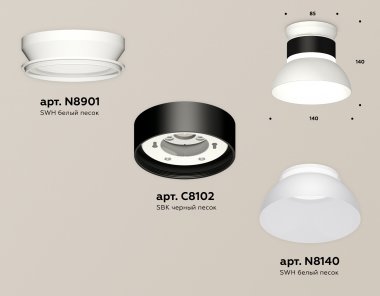 Комплект накладного светильника XS8102046 SBK/SWH/FR черный песок/белый песок/белый матовый GX53 (N8901, C8102, N8140)