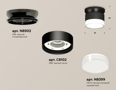 Комплект накладного светильника с акрилом XS8102052 SBK/FR/CL черный песок/белый матовый/прозрачный GX53 (N8902, C8102, N8399)