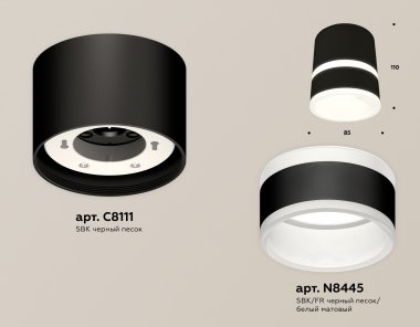 Комплект накладного светильника с акрилом XS8111005 SBK/FR черный песок/белый матовый GX53 (C8111, N8445)