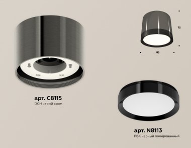 Комплект накладного светильника XS8115001 DCH/PBK черный хром/черный полированный GX53 (C8115, N8113)