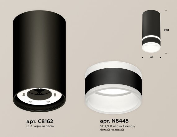 Комплект накладного светильника с акрилом XS8162005 SBK/FR черный песок/белый матовый GX53 (C8162, N8445)