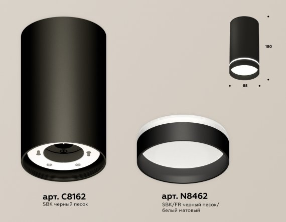Комплект накладного светильника с акрилом XS8162006 SBK/FR черный песок/белый матовый GX53 (C8162, N8462)