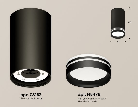 Комплект накладного светильника с акрилом XS8162007 SBK/FR черный песок/белый матовый GX53 (C8162, N8478)