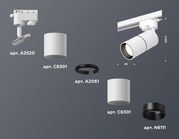 Комплект трекового однофазного светильника XT6301010 SWH/PBK белый песок/черный полированный MR16 GU5.3 (A2520, C6301, A2061, C6301, N6111)