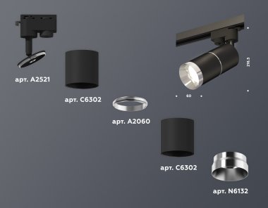 Комплект трекового однофазного светильника XT6302002 SBK/PSL черный песок/серебро полированное MR16 GU5.3 (A2521, C6302, A2060, C6302, N6132)