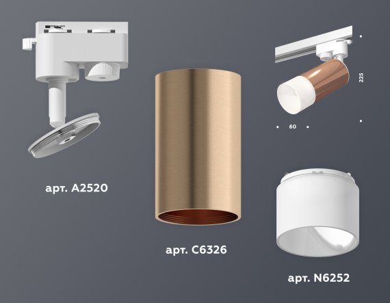 Комплект трекового однофазного светильника с акрилом XT6326003 PPG/SWH/FR золото розовое полированное/белый песок/белый матовый MR16 GU5.3 (A2520, C6326, N6252)