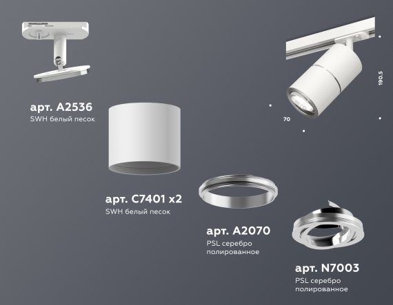 Комплект поворотного трекового светильника XT7401002 SWH/PSL белый песок/серебро полированное MR16 GU5.3 (A2536, C7401, A2070, C7401, N7003)