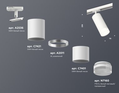 Комплект трекового светильника с акрилом XT7401091 SWH/CL белый песок/прозрачный MR16 GU5.3 (A2536, C7421, A2011, C7401, N7160)