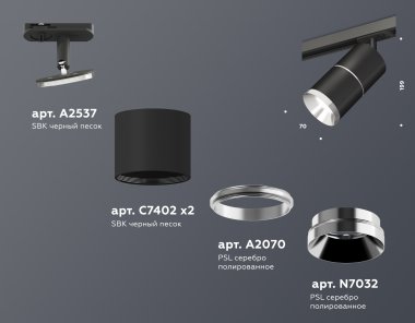 Комплект трекового светильника XT7402010 SBK/PSL черный песок/серебро полированное MR16 GU5.3 (A2537, C7402, A2070, C7402, N7032)
