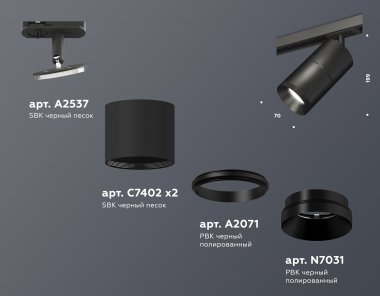Комплект трекового светильника XT7402020 SBK/PBK черный песок/черный полированный MR16 GU5.3 (A2537, C7402, A2071, C7402, N7031)