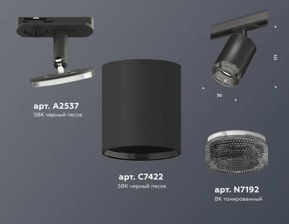 Комплект трекового светильника с композитным хрусталем XT7422010 SBK/BK черный песок/тонированный MR16 GU5.3 (A2537, C7422, N7192)