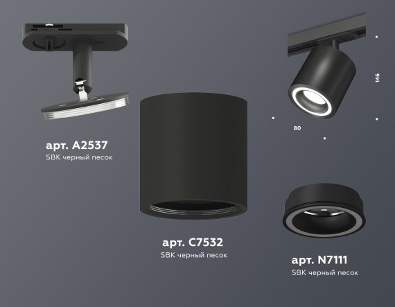 Комплект трекового светильника XT7532010 SBK черный песок MR16 GU5.3 (A2537, C7532, N7111)