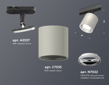 Комплект трекового светильника XT7533001 SGR/PSL/SBK серый песок/серебро полированное/черный песок MR16 GU5.3 (A2537, C7533, N7022)