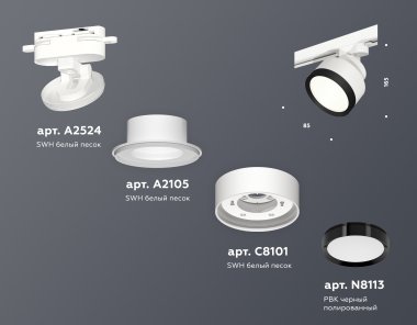 Комплект трекового светильника XT8101002 SWH/PBK белый песок/черный полированный GX53 (A2524, A2105, C8101, N8113)