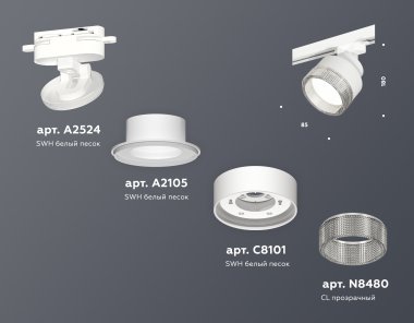 Комплект трекового светильника с композитным хрусталем XT8101040 SWH/CL белый песок/прозрачный GX53 (A2524, A2105, C8101, N8480)