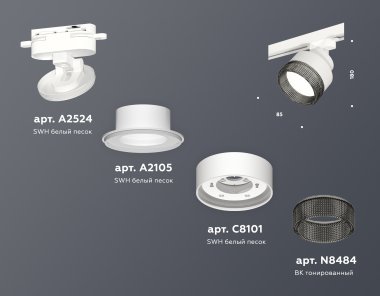 Комплект трекового светильника с композитным хрусталем XT8101041 SWH/BK белый песок/тонированный GX53 (A2524, A2105, C8101, N8484)