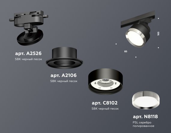 Комплект трекового светильника XT8102003 SBK/PSL черный песок/серебро полированное GX53 (A2526, A2106, C8102, N8118)