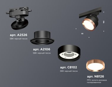 Комплект трекового светильника XT8102005 SBK/PPG черный песок/золото розовое полированное GX53 (A2526, A2106, C8102, N8126)